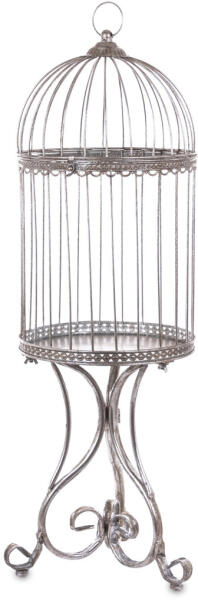 A(z) Kecses romantikus ezüst kalitka állvány míves fém barokkos lábakon 95x30x30cm egy stílusos és igényes darab fém anyagból készült ezüst színben , mérete: 95x30x30cm . A termék a(z) ART-POL márka kínálatából származik , eredeti származási helye: Lengyelország.