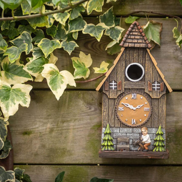 Esschert Design Kakukkos óra alakú polyresin madárház