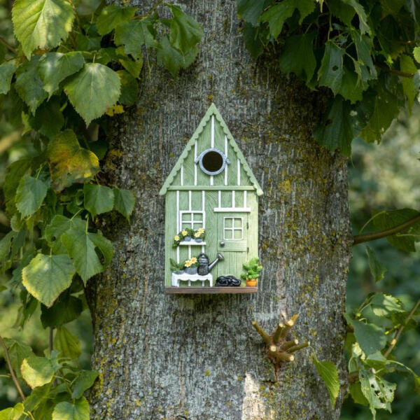 Kerti fészer kinézetű, dekoratív madárház polyresinből. A műgyantából készült házikó ellenáll az időjárás viszontagságainak, szélnek és esőnek. Kiváló menedéket és fészkelési helyet biztosít a cinkéknek a kertben vagy az eresz alatt. A 27 mm átmérőjű nyílás ideális a legtöbb cinegeféle számára, így vendégül láthatod a széncinegéket, a kormosfejű cinegéket, a kékcinegéket és a búboscinegéket is. A ferde tető alatti kis lyukakon szabadon áramlik a levegő, ezért nem melegszik fel az odú belseje nyáron sem. A madárház alja levehető, így ha épp nincs lakója a madárháznak, egyszerűen tisztíthatod. Az előfúrt hátoldalnak köszönhetően pillanatok alatt rögzítheted egy fára vagy akár a házfalra is. Teremts otthonos hangulatot szárnyas barátaidnak is ezzel a műgyantából készült dekoratív kiegészítővel, mely garantáltan a kert dísze lesz!