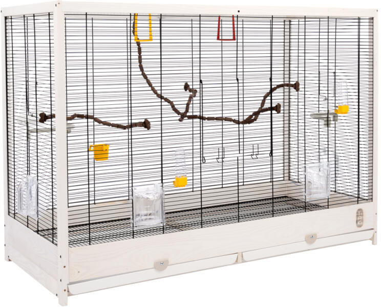 A zooplus. hu kínálatából: A teljesen felszerelt TIAKI Robin XXL madárkalitka alkalmas kanárik, egzotikus és más kisebb madárfajok számára is, és mindent kínál, amire egy kis madárszív vágyik. Az itatópalackok és az eledeltároló tartályok mellett zöldségklipszek és keksztartók is szerepelnek a felszerelésben. Tehát adottak az ideális feltételek a jó és változatos táplálkozáshoz. A mozgás örömének elősegítése érdekében egy hinta és két, ághoz hasonló, rugalmas ülőrúd is helyet kapott a kalitkában, ezek tetszés szerint formázhatók, és a ketrec különböző pontjaira rögzíthetők. Időről időre meg is változtathatja a helyüket, hogy kis tollas barátjának változatos kalitkabelsőt biztosítson. A szennyeződések és az ürülék összegyűjtésére szolgáló védőrácsnak és kivehető aljtálcának köszönhetően a TIAKI Robin XXL madárkalitka tisztítása nagyon kényelmes, s a fenntarthatóság és a környezetvédelem szempontjából is élenjáró termékről van szó: a ketrec újrahasznosított és tartós anyagokból készül. Minimalista megjelenésének köszönhetően jól illeszkedik bármilyen lakberendezési stílusba. A TIAKI Robin XXL madárkalitka jellemzői:Mutatós madárkalitka kanárik, egzotikus madarak és más kisebb madarak számáraKörnyezetbarát anyagok: az aljtálca újrahasznosított műanyagból, a rács újrahasznosított vasból állFelszereltséggel: eledeltároló tartály, itatópalackok, zöldségklipsz, keksz- és eledeltartó, hinta és ülőrudakStrapabíró: speciálisan lakkozott fa keret, festett vasrács a különös tartósságértTöbb bejárat: egy nagy ajtó az elülső oldalon, két kisebb pedig oldaltVédőráccsal felszerelt: ideális tisztítási és javítási munkákhoz Könnyen tisztítható: a 2 kivehető aljtálcának köszönhetően összegyűjti a szennyeződéseket és az ürüléketRugalmas ülőrudak: tetszés szerint elhelyezhetők és kialakíthatókMinimalista design: fehér és tiszta benyomást kelt, bármilyen lakókörnyezetbe illikSzín: fehérMéret:Teljes méret: H 113,5 x Sz 53 x M 82 cmBelső méret: H 111 x Sz 51 x M 78 cmAljtálca magassága: M 3 cmRácstávolság: 9,8 mmRácsvastagság: 1,5 mm vízszintes / 3 mm függőlegesAnyag/ rácsbevonat: acél / epoxi-poliészter porszórással festveAjtók:1 főajtó elöl: Sz 25,5 x M 23,5 cm2 ajtó oldalt: egyenként Sz 9 x M 19 cmFontos megjegyzés:Semmiképpen ne rakjon több kalitkát egymásra, mert azzal jelentősen megnövekszik az a magasság, ahonnan kedvence esetleg leeshet. Háziállata védelme érdekében a padlózatra helyezze a ketrecet, s lehetőség szerint semmivel ne terhelje annak tetejét!_______________________________ ________________________________________ _______A TIAKI nem próbál különlegesnek látszani, hiszen van, ami már eleve különleges: az Ön és kedvence közötti egyedülálló kapcsolat – valami, ami csakis az Önöké. A TIAKI-nél sokkal inkább azt szeretnénk elérni, hogy az Önök mindennapi életének részévé váljunk. Szeretnénk kedvence boldogságához minden pillanatban hozzájárulni: a játékkal, melyet kitartóan rágcsál, a pórázzal, melyet türelmetlenül a gazdijához visz, amikor sétálni indulnak, vagy a fekhellyel, amelyen boldogan alszik el egy izgalmas nap után. A TIAKI célja, hogy az a márka legyen, amelyre minden élethelyzetben számíthatnak: a mindkettőjüknek örömet szerző, ragyogó pillanatokban éppúgy, mint a szőrös, összekarmolt vagy megrágott történésekkor. Ilyenkor ott szeretnénk lenni. TIAKI. Az életük része.